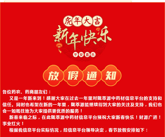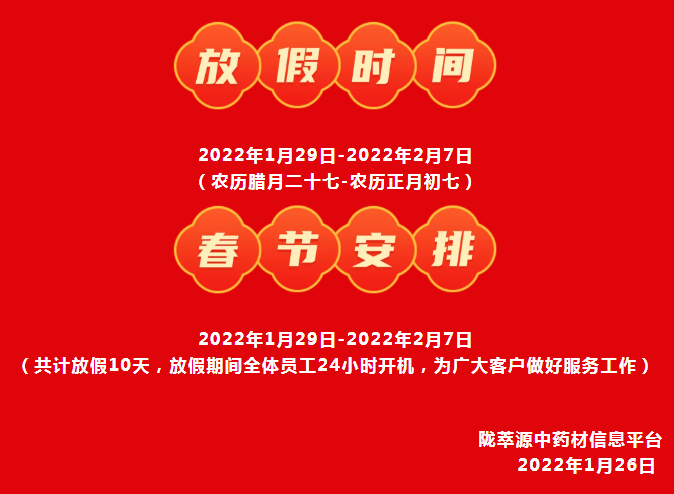 2022年陇萃源中药材信息平台春节放假通知