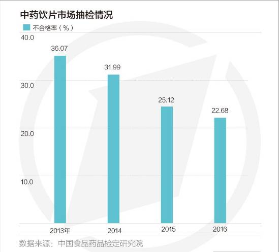 “2013~2016年全国药品质量抽验监测表明,中药材与饮片总体合格率分别为64%、68%、75%、77%,合格率呈逐年提升、稳步向好的趋势。但相对于其他药品,中药材及饮片的不合格率依然较高。”中国食品药品检定研究院中药民族药检定所所长马双成对第一财经表示。