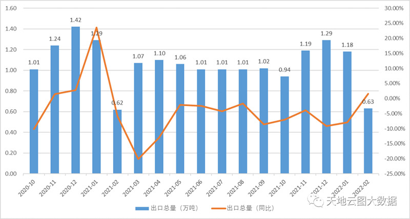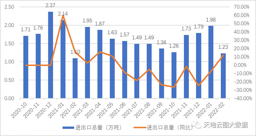 图2:2020年10月-2022年2月中药材进出口总量(数据来源:中国海关)