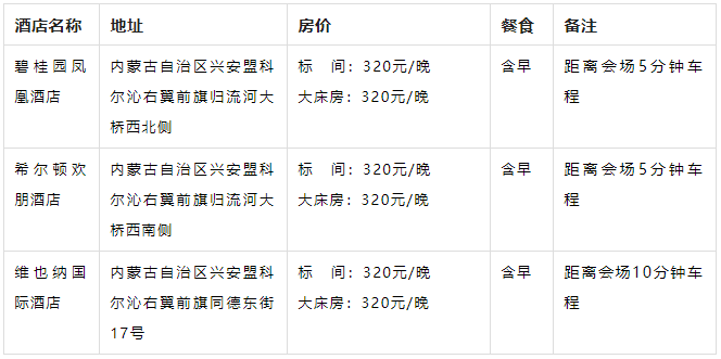 报到地点:兴安盟碧桂园凤凰酒店(内蒙古自治区兴安盟科尔沁右翼前旗归流河大桥西北侧)