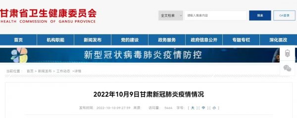 2022年10月9日甘肃新冠肺炎疫情情况