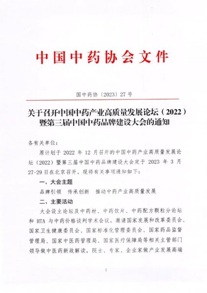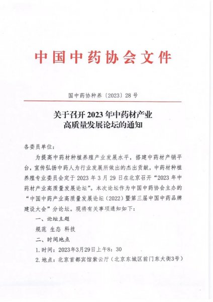 【会议通知】关于召开2023年中药材产业高质量发展论坛的通知