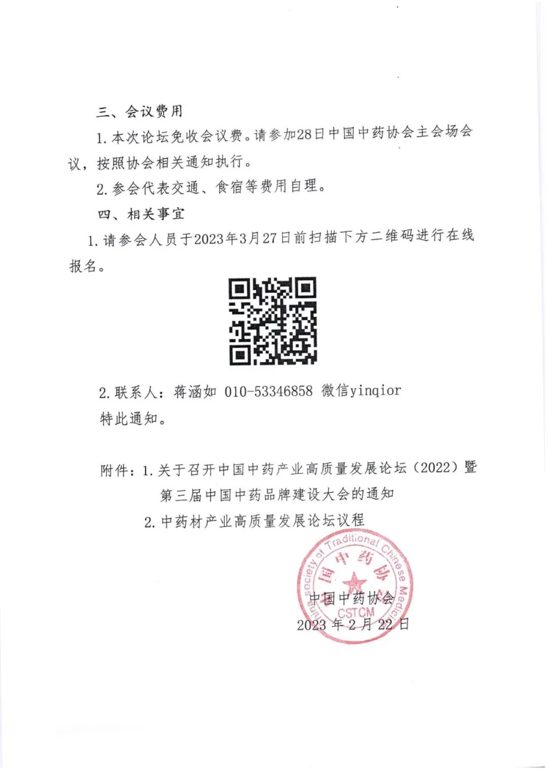1.本次论坛免收会议费。如需参加28日中国中药协会主会场会议,请按《中国中药产业高质量发展论坛(2022)暨第三届中国中药品牌建设大会》通知执行(详见附件)。