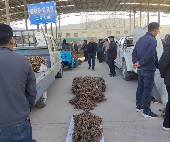 当归头大约有六七吨左右,成交价格在140-150元/kg左右,市场人流量大,整体走货稳定。