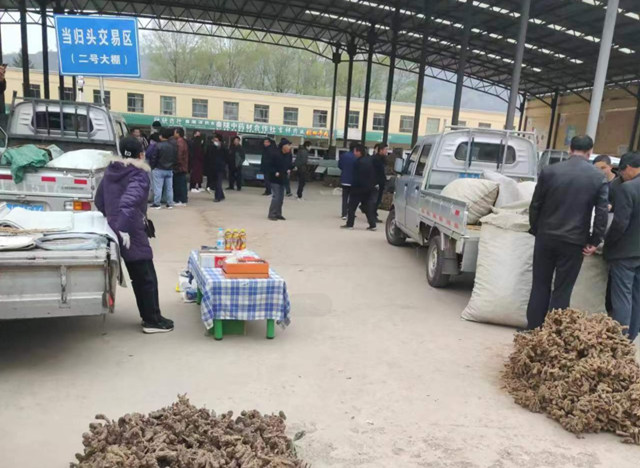 当归头大约有六七吨左右货源出售,成交价格在160-170元/kg左右,成交量占总上货量的百分之六七十左右。
