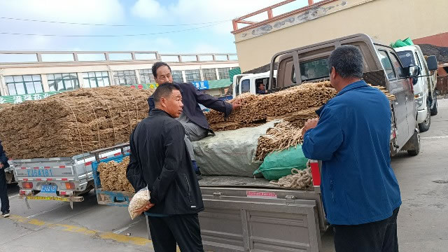 今日首阳市场黄芪原装个子上货量相比上集增加明显,大约有50-60吨货源出售。市场人流量基本稳定,要货客商不多,零星经营户围观看货,要货意向不浓,成交货源零星。整体交易平缓,成交价格无明显波动。毛芪价格在22-24元/kg左右,0.8左右能切片的黄芪个子在25-27元/kg左右。0.6-0.8cm规格黄芪节在32-36元/kg左右,0.8-1.0cm规格黄芪节在38-43元/kg左右;1.0-1.2cm规格黄芪节43-46元/kg左右。
