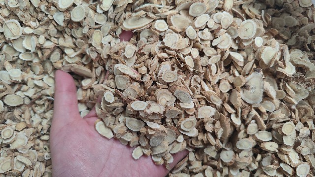 今日黄芪原装个子上货量不大,有10-12吨左右货源出售。市场人流量大,成交货源零星,成交价格基本稳定。毛芪价格在21-24元/kg左右,0.8左右能切片的黄芪个子在25-27元/kg左右。0.6-0.8cm规格黄芪节在32-36元/kg左右,0.8-1.0cm规格黄芪节在38-43元/kg左右;1.0-1.2cm规格黄芪节43-48元/kg左右。