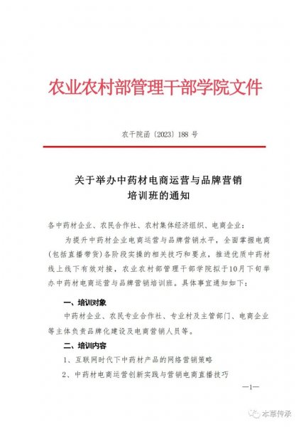 【培训通知】中药材电商运营与品牌营销培训班开班啦,农业农村部
