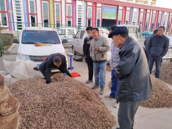 本集市场鲜货上市量有所减少,约有200吨货源出售。市场人流量大,成交价格相对上集上涨。质量好、颜色正的成交价格为37~45元/市斤,质量一般、颜色一般的成交价格为33~36元/市斤的中等款冬花,质量差、颜色一般的货成交价格为28~32元/市斤。