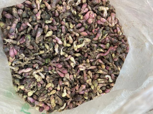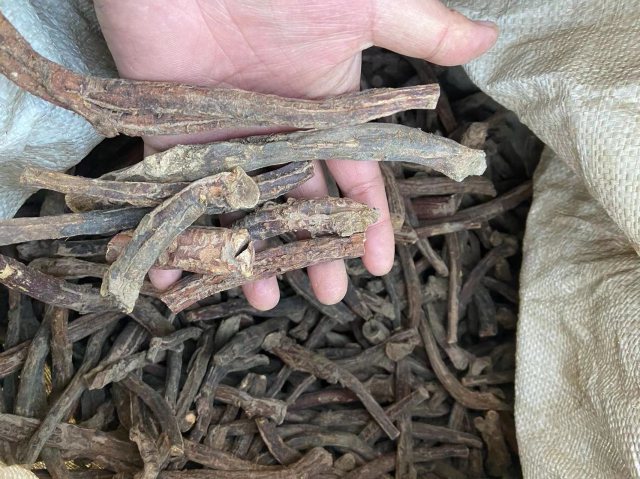 要价10元一公斤的生晒大黄节子,给价9元一公斤,未成交