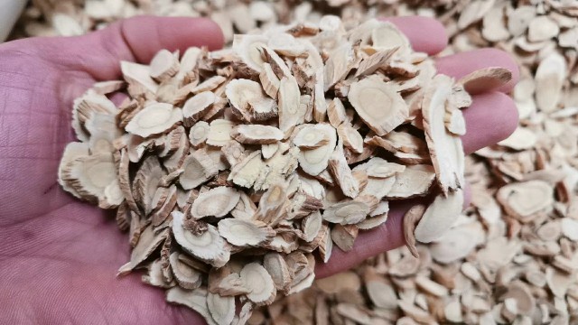 今日黄芪原装个子有8车货源出售。天气冷市场人流量少,有零星采购商询价要货,要货意向不浓。整体交易迟缓。毛芪价格在18-19元/kg左右,0.8左右能切片的毛芪个子在20-23元/kg左右。0.6-0.8cm规格黄芪节子在32-36元/kg左右;0.8-1.0cm规格黄芪节子在38-43元/kg左右;1.0-1.2cm规格黄芪节子43-48元/kg左右。