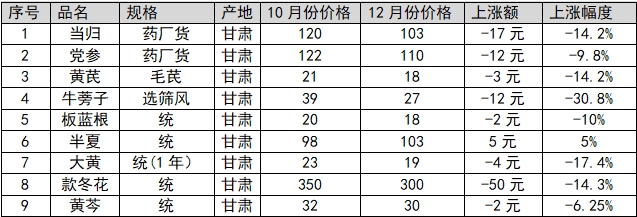 陇萃源2023年第四季度中药材行情盘点
