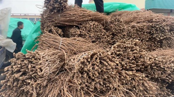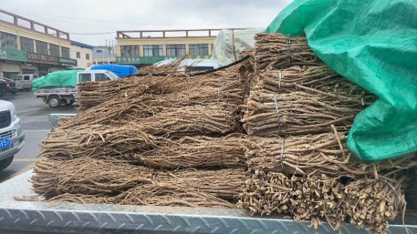 今日黄芪原装个子有75车货源出售,市场人流量较大。受降雨影响,大部分货源用篷布遮盖,少量货源成交,交易提前结束。