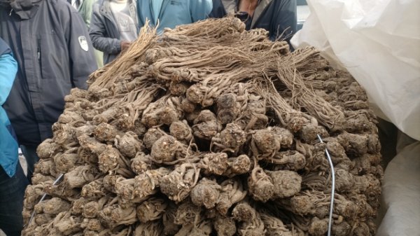 2、今日黄芪上货量有所增加,大约有90-100吨货源出售。市场人流量少,本地经营户及加工户采购为主,刚需购进,采购力度小。整体走货较缓,成交价格基本稳定。0.6-0.8cm规格黄芪节30-34元/kg,0.8-1.0cm规格40-43.5元/kg;1.0-1.2cm规格黄芪节45-48元/kg;1.2-1.4cm规格黄芪节50-56元/kg;药厂毛芪成交价格17.5-18.5元/kg左右,好毛芪19-20元/kg之间;净芪成交价格在22-25元/kg;毛二条成交价格在14.5-15.5元/kg;净二条成交价格18-19元/kg;受干度、条形、皮色影响,价格有差异,具体以实际成交价格为主。