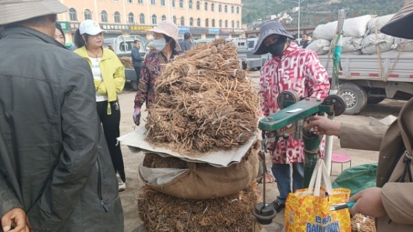 3、今日党参大约有35-40吨货源出售,上货量基本稳定。市场人流量不大,有零星四川客商采购党参中大条货源,采购力度不大。常见的本地经营户及加工户少量要货,多挑拣低价位货源购进,采购力度小,成交货源少。整体交易依然走缓,成交价格疲软。党参药厂0.4cm以下成交价格114-117元/kg之间;0.4-0.6规格成交价格在122-128元/kg;0.6-0.8规格成交价格136-145元/kg;0.8-1.0规格成交格在148-155 元/kg,1.0以上规格成交价格160元/kg以上。