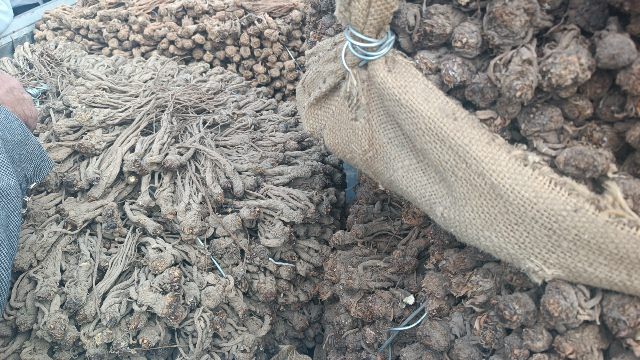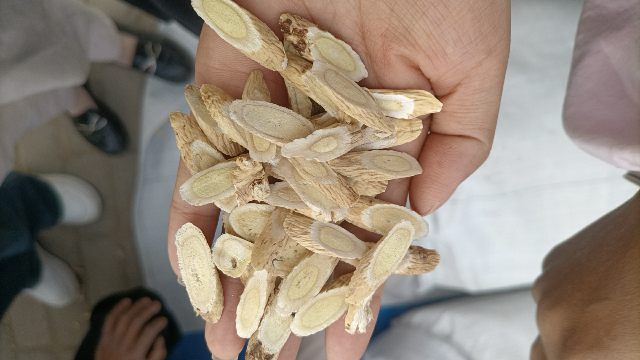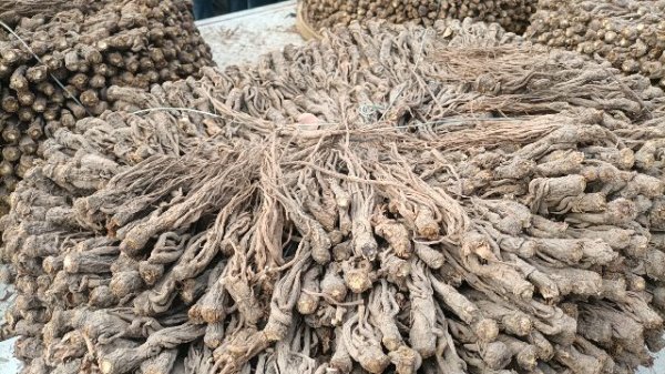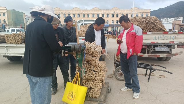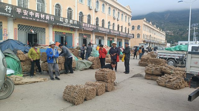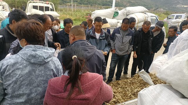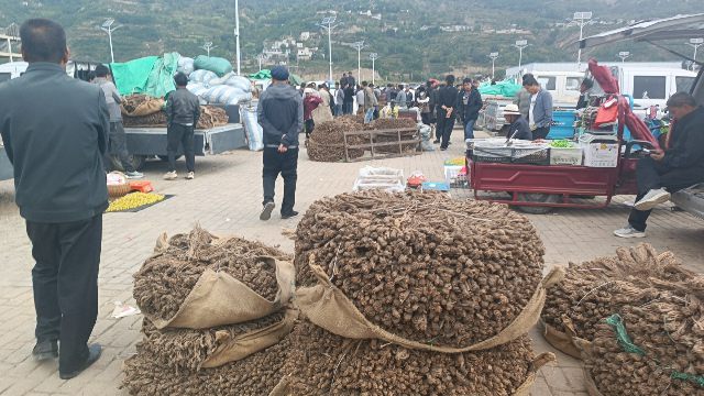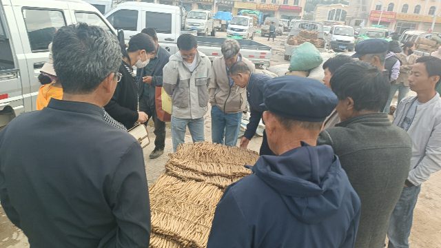 2、今日黄芪大约有90-95吨货源出售,上货量基本稳定。市场人流量不大,常见的本地经营户及加工户按需要货,对节子、股子货源有采购意向;毛芪有少量买家购进,货少,成交不多。整体交易走缓,成交价格稳中显软。0.6-0.8cm规格黄芪节28-33元/kg,0.8-1.0cm规格39-42元/kg;1.0-1.2cm规格黄芪节44-45元/kg;1.2-1.4cm规格黄芪节50-55元/kg;药厂毛芪成交价格17.5-18.5元/kg左右,好毛芪19-20元/kg之间;净芪成交价格在22-24元/kg;毛二条成交价格在14.5-15.5元/kg;净二条成交价格18-19元/kg;受干度、条形、皮色影响,价格有差异,具体以实际成交价格为主。