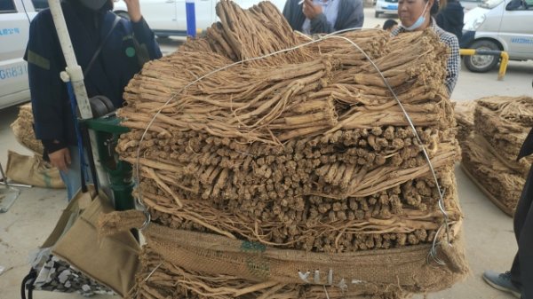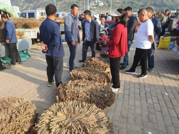 3、今日党参大约有20吨货源出售。市场人流量不大,邻县客商及本地经营户带客采购党参中条、中大条货源。本地经营户少量采购党参药厂、小条货源。成交价格不高,成交量相比上集略有回升。整体交易走缓,成交价格略显疲软。党参药厂0.4cm以下成交价格93-97元/kg之间;0.4-0.6规格成交价格在103-113元/kg;0.6-0.8规格成交价格120-130元/kg;0.8-1.0规格成交格在135-148元/kg,1.0以上规格成交价格155元/kg以上。