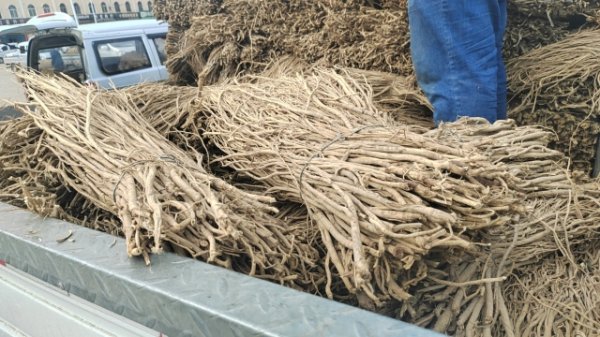 2、今日黄芪大约有60-70吨货源出售。上货量稳定,市场人流量不大,少量陇西客商购进毛芪货源,成交货源不多。本地经营户及加工户按需购进合适货源。整体交易走缓,成交价格疲软。0.6-0.8cm规格黄芪节28-33元/kg,0.8-1.0cm规格39-42元/kg;1.0-1.2cm规格黄芪节44-45元/kg;1.2-1.4cm规格黄芪节50-55元/kg;药厂毛芪成交价格17.5-18.5元/kg左右,好毛芪19-20元/kg之间;净芪成交价格在22-24元/kg;毛二条成交价格在14.5-15.5元/kg;净二条成交价格18-19元/kg;受干度、条形、皮色影响,价格有差异,具体以实际成交价格为主。