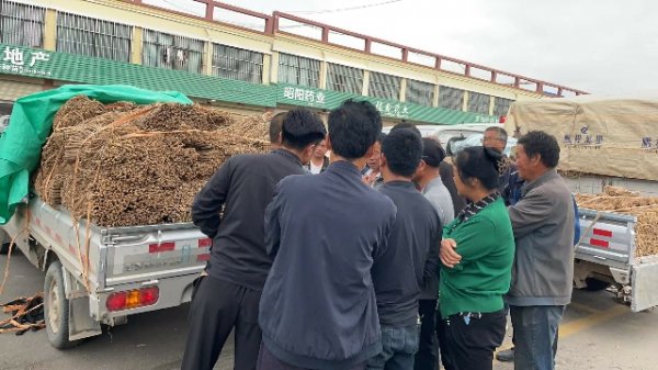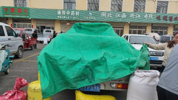 今日黄芪、党参、种籽市场上货量小,7:45左右开始降雨,货主用篷布遮盖货物,陆续离开市场,交易提前结束。