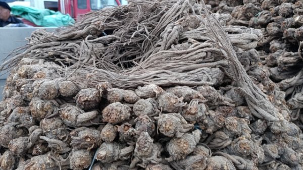 2、今日黄芪上货量减少明显,大约有50-60吨货源出售。市场人流量少,本地经营户及加工户少量购进股子、节子货源,成交货源不多,交易提前结束。0.6-0.8cm规格黄芪节26-30元/kg,0.8-1.0cm规格36-40元/kg;1.0-1.2cm规格黄芪节42-43元/kg;1.2-1.4cm规格黄芪节50-55元/kg;药厂毛芪成交价格17-18元/kg左右,好毛芪18-19元/kg之间;净芪成交价格在20-23元/kg;毛二条成交价格在13.5-14.5元/kg;净二条成交价格16.5-18元/kg;受干度、条形、皮色影响,价格有差异,具体以实际成交价格为主。