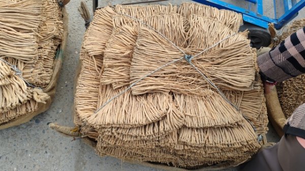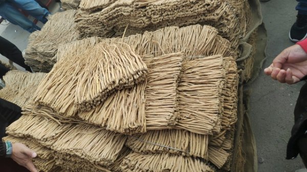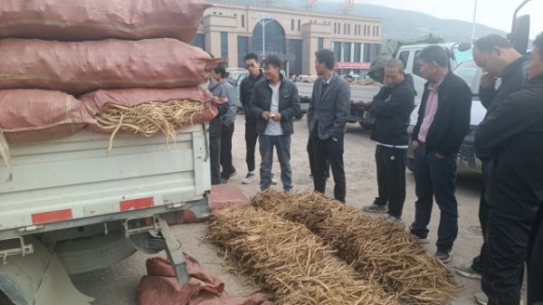 2、今日黄芪大约有30-40吨货源出售,上货量基本稳定。市场人流量不大,少量本地加工户按需购进皮色好的切片货源,采购力度不大;经营户随销随购。整体走货缓,成交价格疲软。0.6-0.8cm规格黄芪节24-26元/kg,0.8-1.0cm规格34-38元/kg;1.0-1.2cm规格黄芪节40-43元/kg;1.2-1.4cm规格黄芪节48-55元/kg;药厂毛芪成交价格15-16元/kg左右,好毛芪16-18元/kg之间;净芪成交价格在20-23元/kg;毛二条成交价格在12-13元/kg;净二条成交价格14-17元/kg;受干度、条形、皮色影响,价格有差异,具体以实际成交价格为主。