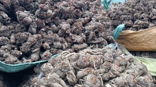 2、今日黄芪上货量依然较小,大约有35-40吨货源出售。市场人流量小,本地经营户及加工户少量购进节子、股子货源,采购力度小,成交价格疲软。0.6-0.8cm规格黄芪节23-26元/kg,0.8-1.0cm规格34-38元/kg;1.0-1.2cm规格黄芪节40-43元/kg;1.2-1.4cm规格黄芪节47-54元/kg;药厂毛芪成交价格15-16元/kg左右,好毛芪16-18元/kg之间;净芪成交价格在20-23元/kg;毛二条成交价格在12-13元/kg;净二条成交价格14-17元/kg;受干度、条形、皮色影响,价格有差异,具体以实际成交价格为主。
