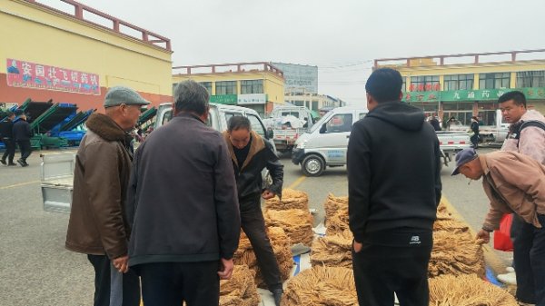 今日有两车黄芪鲜货上市交易,市场人流量大,大多客商围观询价了解行情。两车均以3.2元/市斤成交。