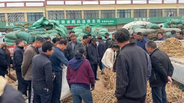 今日黄芪鲜货上货量稳定,有11车货源出售。市场人流量大,本地经营户按需要货;邻县及外地客商围观询价者多,购货意愿不强,大多买家还在观望了解行情。成交价格在2.6-3.5元/市斤之间。