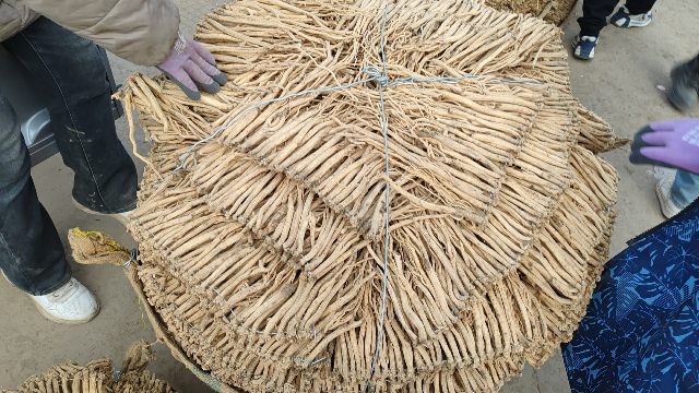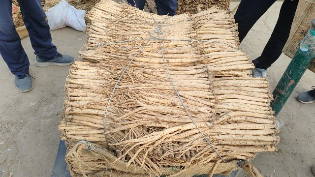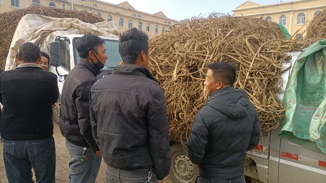 2、今日鲜黄芪大约有240-260车货源出售,上货量略有增加。市场人流量稳定,有邻县客商采购3.3-3.6元/市斤左右的货源;本地加工户挑拣好质量货源购进。整体走货正常,成交价格基本稳定。小统货成交价格3-3.2元/市斤左右;中统货成交价格3.3-3.5元/市斤左右;大统货成交价格3.7-4.2元/市斤左右。