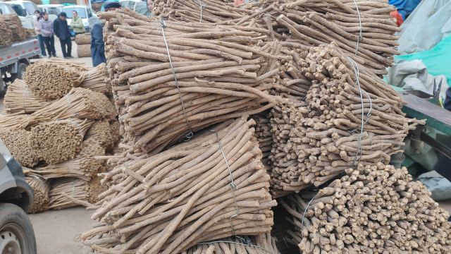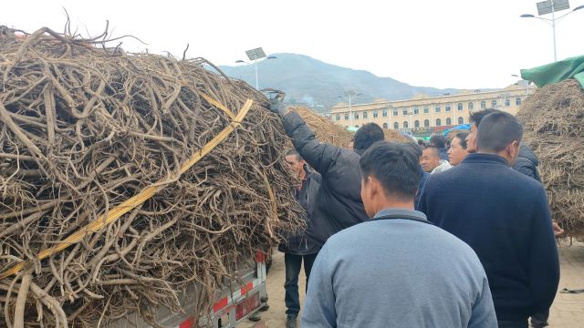2、今日黄芪上货量与上一集差不多,大约有20吨货源出售。市场人流量基本稳定,本地加工户按需购进节子货源,节子走货稳定。其他规格货源上货少,成交不多。整体交易平缓,成交价格稳定。0.6-0.8cm规格黄芪节23-26元/kg,0.8-1.0cm规格34-38元/kg;1.0-1.2cm规格黄芪节40-43元/kg;1.2-1.4cm规格黄芪节47-54元/kg;药厂毛芪成交价格15.5-16.5元/kg左右,好毛芪17-18元/kg之间;净芪成交价格在20-23元/kg;毛二条成交价格在12-13元/kg;净二条成交价格14-17元/kg;受干度、条形、皮色影响,价格有差异,具体以实际成交价格为主。