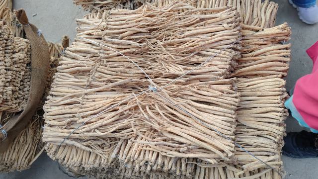 2、今日黄芪上货量有所增加,大约有45-50吨货源出售。市场人流量基本稳定,本地加工户按需采购好质量节子货源,经营户围观商量股子货源。整体交易平稳,成交价格基本稳定。0.6-0.8cm规格黄芪节23-26元/kg,0.8-1.0cm规格34-38元/kg;1.0-1.2cm规格黄芪节40-43元/kg;1.2-1.4cm规格黄芪节47-54元/kg;药厂毛芪成交价格15.5-16.5元/kg左右,好毛芪17-18元/kg之间;净芪成交价格在20-23元/kg;毛二条成交价格在12-13元/kg;净二条成交价格14-17元/kg;受干度、条形、皮色影响,价格有差异,具体以实际成交价格为主。