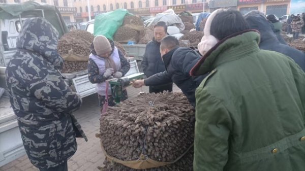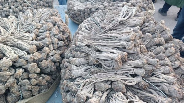 2、今日黄芪大约有70-75吨货源出售,上货量增加。市场人流量基本稳定,常见本地经营户及加工户按需要货,主要购进节子、大股子货源。上货增多,整体交易平缓,成交价格基本稳定。0.6-0.8cm规格黄芪节23-26元/kg,0.8-1.0cm规格34-38元/kg;1.0-1.2cm规格黄芪节40-43元/kg;1.2-1.4cm规格黄芪节47-54元/kg;药厂毛芪成交价格15.5-16.5元/kg左右,好毛芪17-18元/kg之间;净芪成交价格在20-23元/kg;毛二条成交价格在12-13元/kg;净二条成交价格14-17元/kg;受干度、条形、皮色影响,价格有差异,具体以实际成交价格为主。