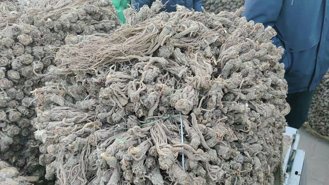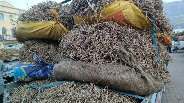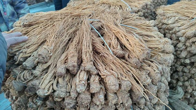 2、今日黄芪上货量依然较大,大约有160-170吨货源出售,毛二条、毛芪上货多。市场人流量基本稳定,本地企业及经营户购进干度好的毛二条、毛芪货源,采购力度大;加工户少量购进节子货源。整体交易平稳,成交价格基本稳定。0.6-0.8cm规格黄芪节22-25元/kg,0.8-1.0cm规格32-36元/kg;1.0-1.2cm规格黄芪节39-42元/kg;1.2-1.4cm规格黄芪节45-52元/kg;药厂毛芪成交价格15-16.5元/kg左右,好毛芪16-18元/kg之间;净芪成交价格在20-23元/kg;毛二条旧货成交价格在11.5-13元/kg,新货成交价格8.5-10.5元/kg之间;净二条成交价格14-16元/kg;受干度、条形、皮色影响,价格有差异,具体以实际成交价格为主。