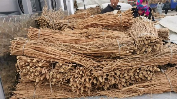 今日黄芪上货量有所减少,约有38车货源出售。市场人流量不大,外地采购商不多,要货的主要以本地经营户为主,按需购进黄芪节子、毛芪货源;零星买家围观商量毛二条货源。整体走货正常,成交价格基本稳定。