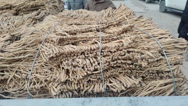 2、今日黄芪上货量略有增加,大约有160-170吨货源出售,毛芪上货量大,好货不多。市场人流量不大,本地加工户按需购进黄芪节子、大股子货源;经营户主要采购黄芪净二条、毛二条、毛芪货源,成交货源不多。整体交易平缓,成交价格基本稳定。0.6-0.8cm规格黄芪节22-24元/kg,0.8-1.0cm规格30-35元/kg;1.0-1.2cm规格黄芪节38-41元/kg;1.2-1.4cm规格黄芪节44-51元/kg;药厂毛芪成交价格12.5-14元/kg左右,好毛芪15-16.5元/kg之间;净芪成交价格在18-20元/kg;毛二条成交价格在8-10元/kg,净二条成交价格12-14元/kg;受干度、条形、皮色影响,价格有差异,具体以实际成交价格为主。