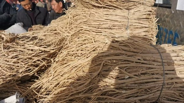今日黄芪上货量略有增加,约有45车货源出售。市场人流量大,零星外地采购商随行购进节子货源;本地经营户按需购进黄芪节子、毛芪货源。整体走货正常,成交价格稳定。