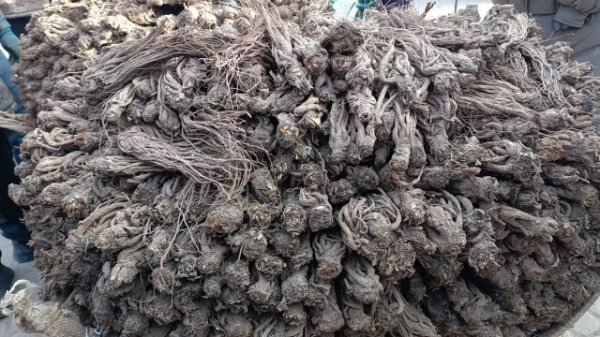 2、今日黄芪苗大约有10车货源出售,好苗子上货量少。市场人流量小,少量本地种植户按需要货,其中一车以5元/市斤成交。货少,成交货源零星,成交价格基本稳定。好苗子成交价格11元/市斤左右;中等苗成交价格7-9元/市斤;下渣苗要价2元/市斤左右。