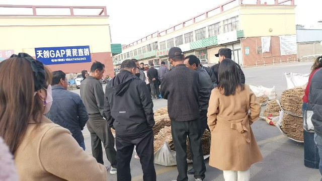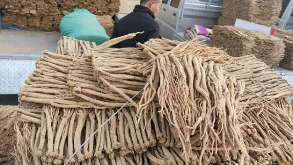 今日黄芪约有46车货源出售,节子上货量有所增加。市场人流量稳定,常见的外地客商及加工户按需采购节子货;本地经营户以随购随销为主;少量买家采购毛芪,成交货源不多。整体交易较缓,成交价格稳定。