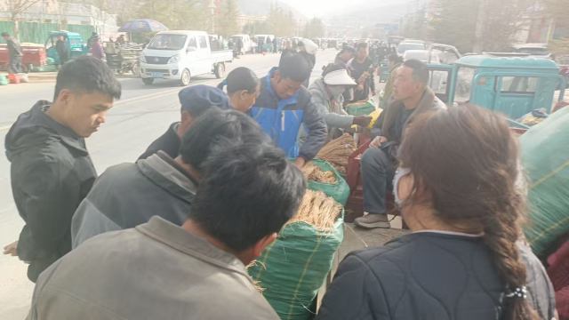 3、今日党参大约有70-80吨货源出售。市场人流量较大,邻县客商及零星外来客商按需采购党参中条、中大条货源;本地经营户对党参药厂货、把子货源少量购进,加工户采购0.4-0.6规格的切片货。整体交易平稳,成交价格基本稳定。党参药厂0.4cm以下成交价格68-72元/kg之间;0.4-0.6规格成交价格在77-84元/kg;0.6-0.8规格成交价格90-105元/kg;0.8-1.0规格成交格在106-118元/kg,1.0以上规格成交价格134元/kg左右。