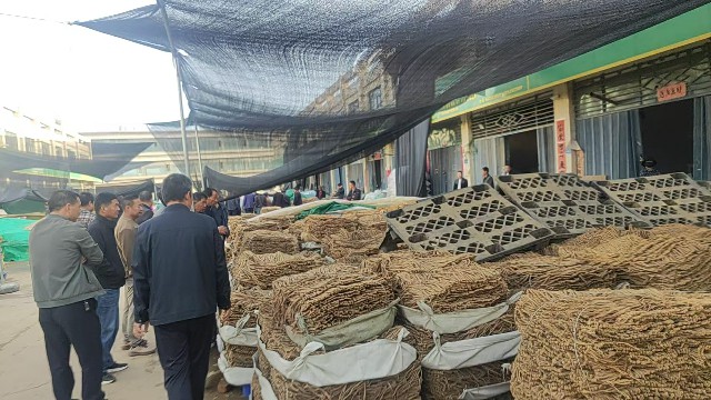 今天渭源市场党参约有300吨货源出售,市场人流量大。整体走动不快,价位稳定,成交量占总上货量的百分之二十左右。