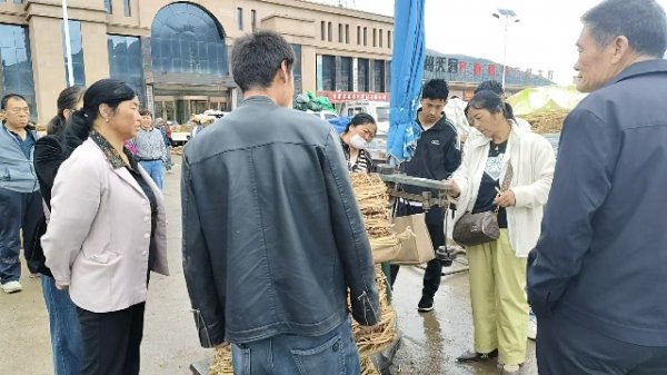 3、受降雨影响,今日党参上货量有所减少,大约有30-35吨货源出售。市场人流量不大,围观商量的客商多,有邻县客商采购党参中大条货源,压价意向明显,货主坚持底价,交易较僵持;本地买家按需随行购进,整体走货平稳,成交价格基本稳定。党参药厂0.4cm以下成交价格102-108元/kg之间;0.4-0.6规格成交价格在110-124元/kg;0.6-0.8规格成交价格126-135元/kg;0.8-1.0规格成交格在138-148元/kg,1.0以上规格成交价格155元/kg以上。