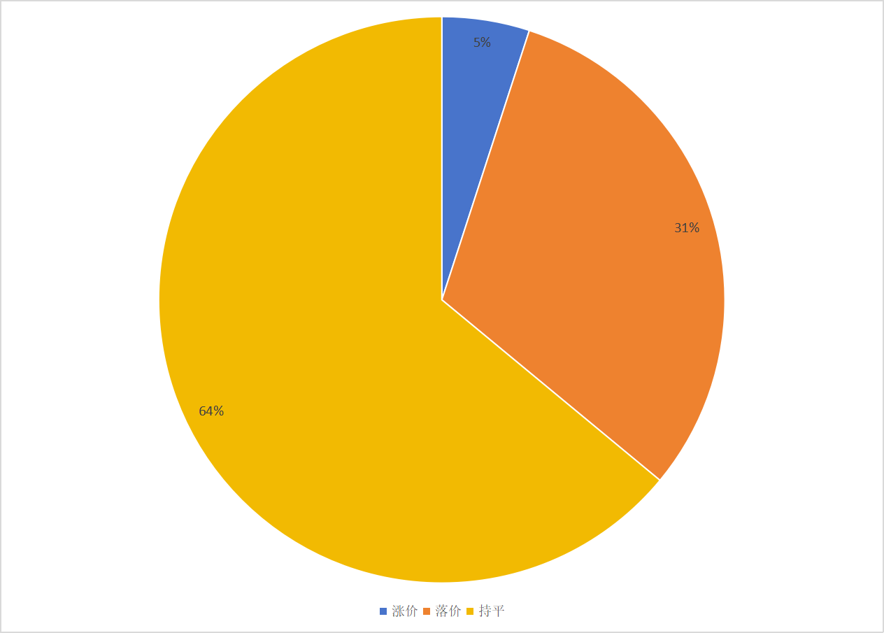 本期品种涨跌环比分析显示,2025年8月30日价格环比2025年7月31日,涨价品规占比5%;落价品规占比31%;持平品规占比64%。
