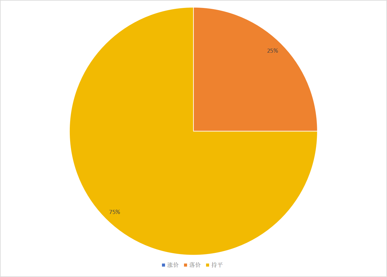 花类4个品规中(款冬花、玫瑰花、红花、金银花),无涨价品种;落价品规占25%;价格平稳的品规占75%。