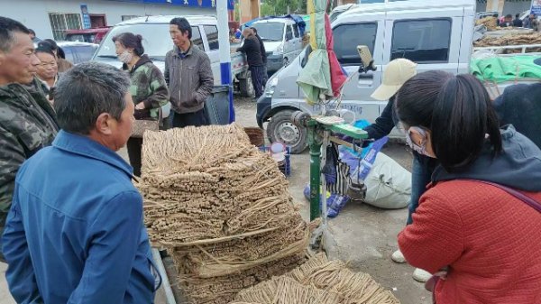 2、今日黄芪上货量略有减少,大约有70-75吨货源出售。市场人流量少,要货买家不多,刚需买家购进黄芪节子、股子货源,采购力度小,成交货源少。整体走货较缓,行情低迷运行。0.6-0.8cm规格黄芪节16-20元/kg,0.8-1.0cm规格26-30元/kg;1.0-1.2cm规格黄芪节36-40元/kg;1.2-1.4cm规格黄芪节42-48元/kg;药厂毛芪成交价格10.5-11.8元/kg左右,好毛芪12.3-14.2元/kg之间;净芪成交价格在17-19元/kg;毛二条成交价格在6.7-8元/kg,净二条成交价格9-10.8元/kg。受干度、条形、皮色影响,价格有差异,具体以实际成交价格为主。