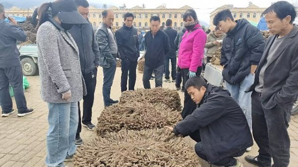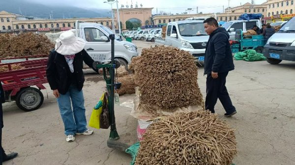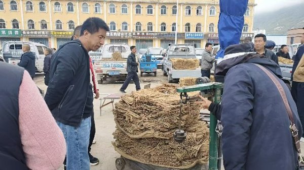 今日党参鲜货少量上市交易,围观询价者较多。