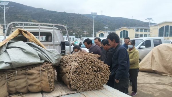 1、今日零星鲜货当归上市交易,少量本地经营户围观商量,其中1袋360元成交了。