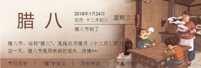 腊八节,俗称“腊八”,是指农历腊月(十二月)初八这一天。腊八节是用来祭祀祖先和神灵,祈求丰收和吉祥的节日,因相传这一天是佛教创始人释迦牟尼在佛陀耶菩提下成道并创立佛教的日子即农历十二月初八,故又被称为“佛成道节”。在中国,有腊八节喝腊八粥、泡腊八蒜的习俗,河南等地,腊八粥又称“大家饭”。是纪念民族英雄岳飞的一种节日食俗。