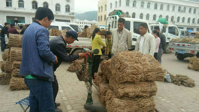 3、今日党参上货量大约在50-55吨左右,上货量基本稳定,成交的货源较少,市场采购客商较少,党参整体交易依然走缓,药厂小条成交价格在34-36元/kg不等,0.4-0.6cm规格40-48元/kg,0.6-0.8cm 规格53-75元/kg,0.8以上78-108元/kg不等,成交价格稳中有降。
