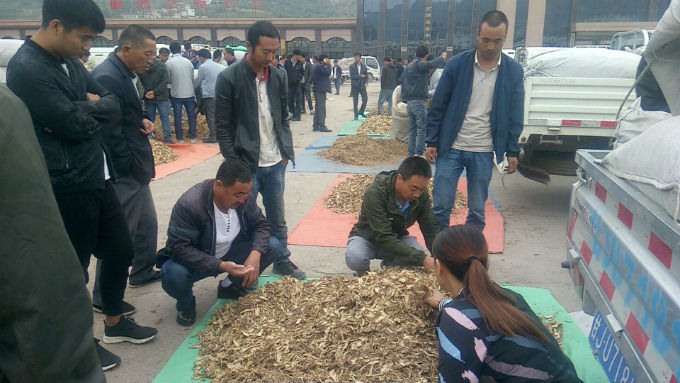 3、今日党参上货量减少明显,上货量大约在20-30吨左右,市场上多数以地方经营户观望为主,少有成交。今日药厂小条成交价格在29-32元/kg左右;党参条0.4-0.6cm规格34-45元/kg;党参条0.6-0.8cm规格51-70元/kg,特大条0.8以上75-102元/kg。