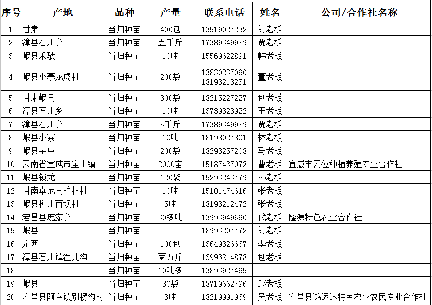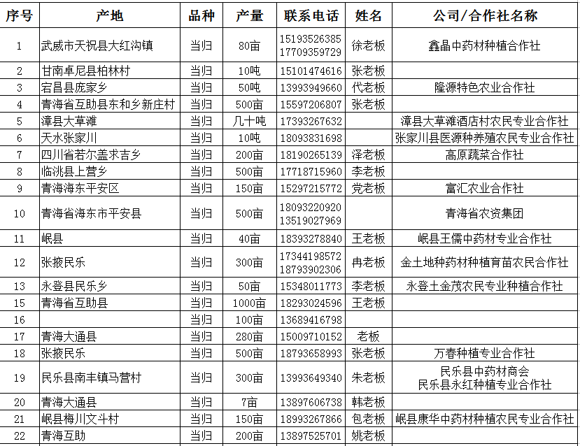 一、当归鲜货供应信息